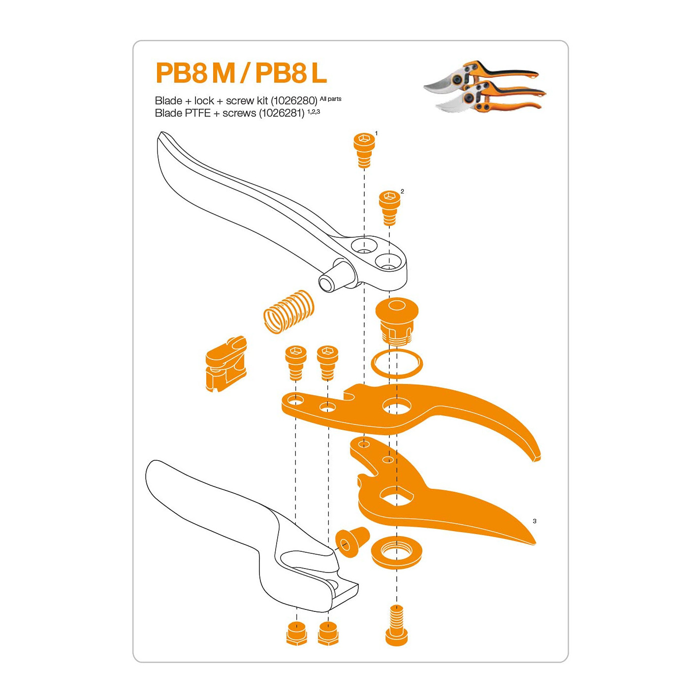 Investire in questo kit di ricambi originali significa scegliere la qualità e l'affidabilità Fiskars, marchio leader nel settore degli utensili da giardinaggio. Non compromettere l'efficienza dei tuoi progetti con lame usurate; rinnova le tue forbici professionali PB-8 M/L oggi stesso!