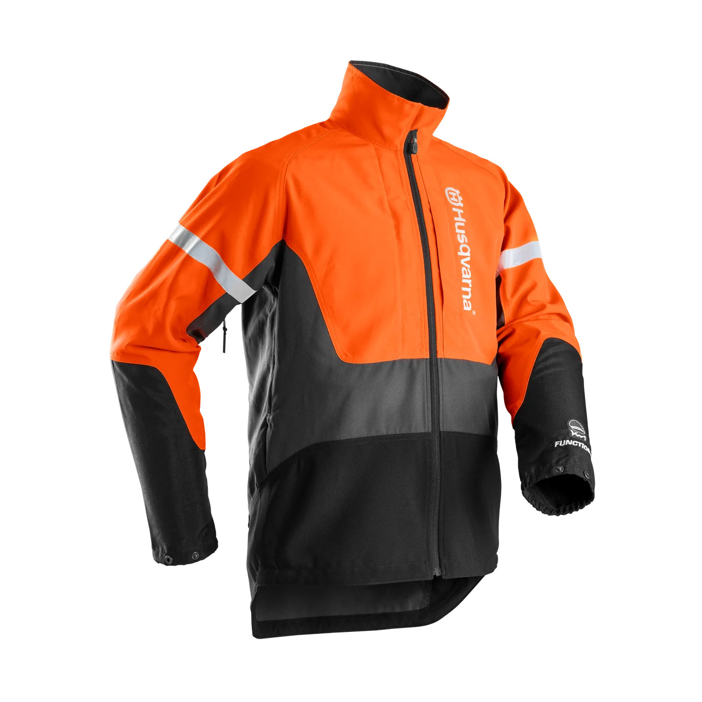 La giacca forestale Husqvarna offre massima protezione e comfort per attività boschive. Impermeabile e traspirante con rinforzi antiusura e passapollice. Design ergonomico per libertà di movimento e sicurezza ottimale.