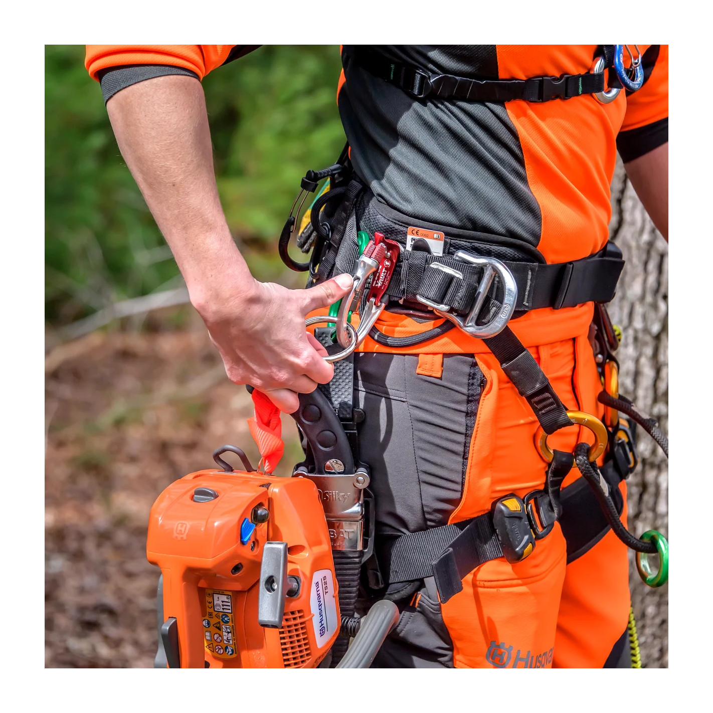 L'occhiello per cavi integrato facilita il fissaggio sicuro della motosega durante le operazioni in altezza, garantendo maggiore sicurezza per l'operatore.