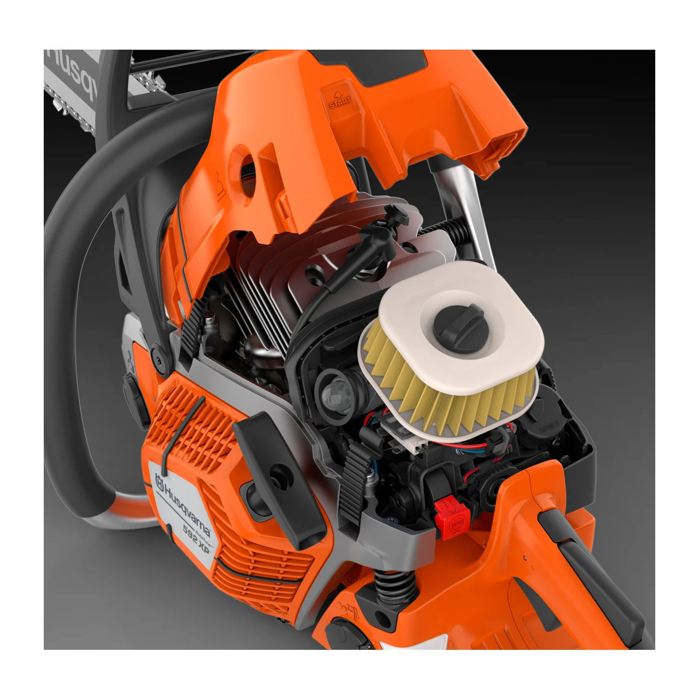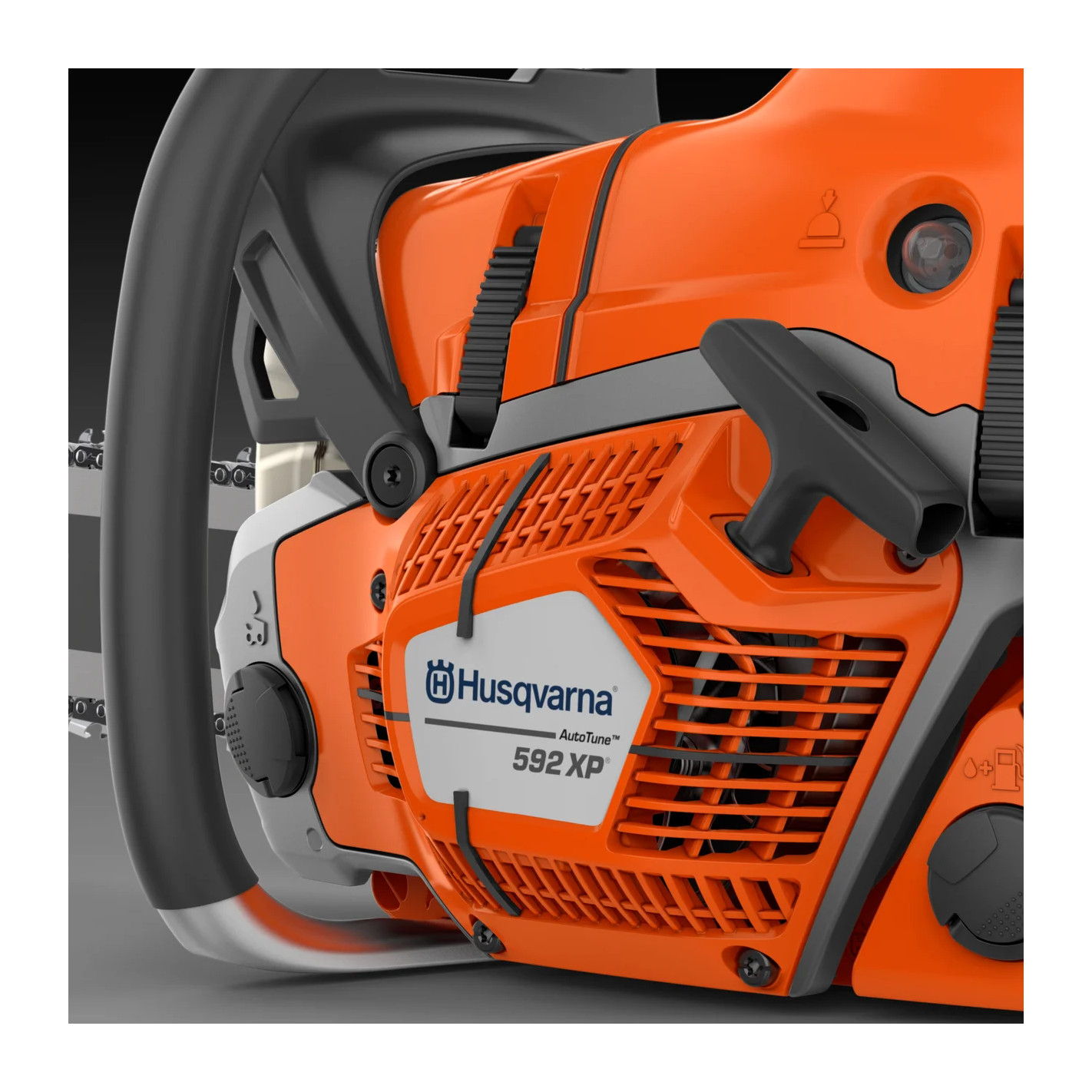 Il sistema di lubrificazione automatica della catena e il tendicatena laterale facilitano l'uso e la manutenzione quotidiana. La motosega 592XP è inoltre dotata di un carter in magnesio, che garantisce robustezza e leggerezza, e di un filtro dell'aria ad alta capacità per prestazioni durature in condizioni difficili.