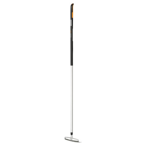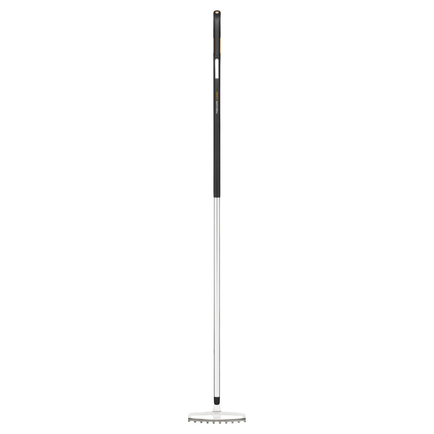 Il rastrello Fiskars per roseti ha 10 denti e un manico ergonomico. Realizzato in alluminio temprato, è leggero (550g) e lungo 165,5 cm. Ideale per giardinaggio di precisione in spazi ristretti.