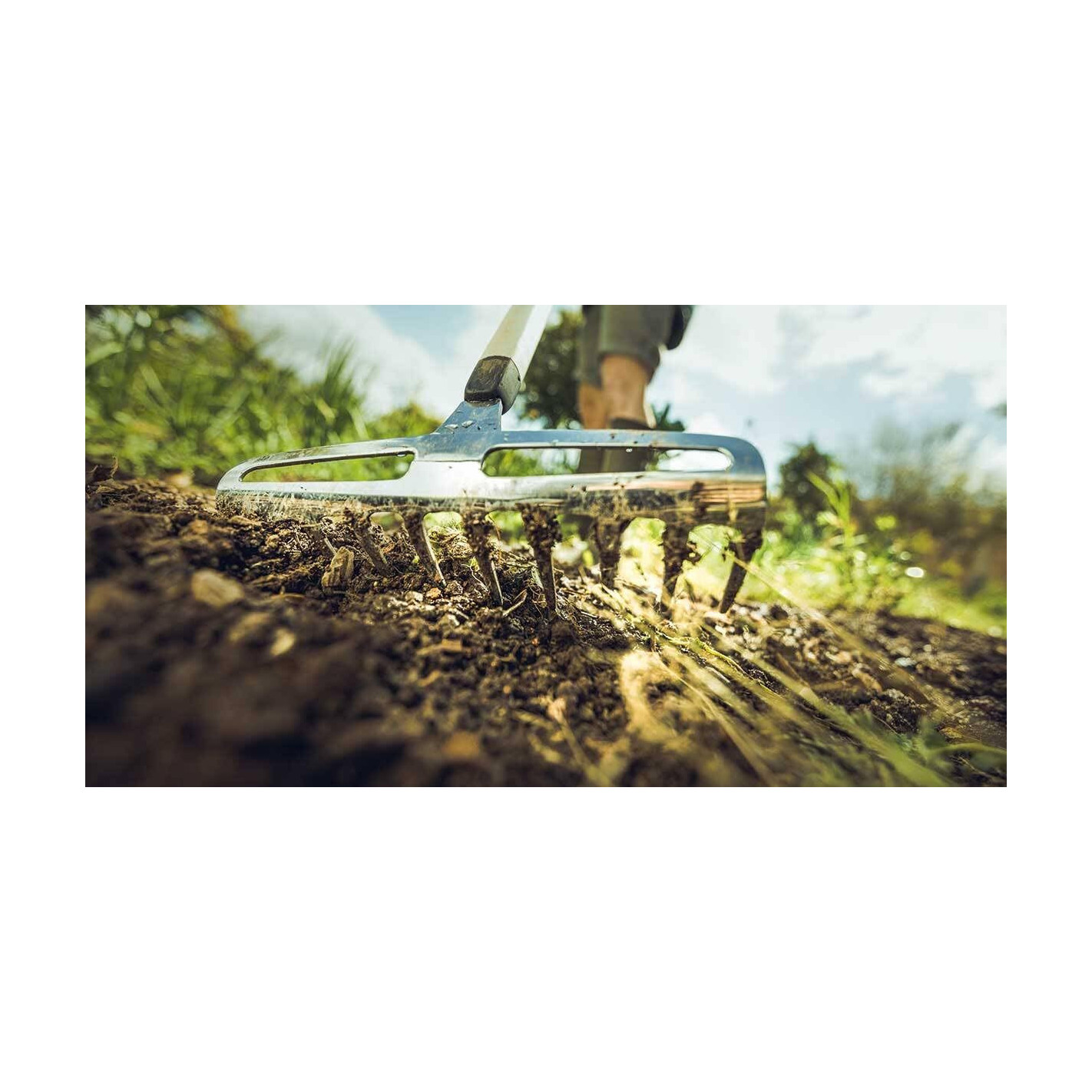 I 10 denti del rastrello sono stati progettati per una pulizia efficiente di piccole superfici e per una distribuzione uniforme del terreno tra le piante. La spaziatura ottimizzata dei denti permette di raccogliere detriti di varie dimensioni, mantenendo al contempo la precisione necessaria per lavorare intorno a piante delicate come i roseti.