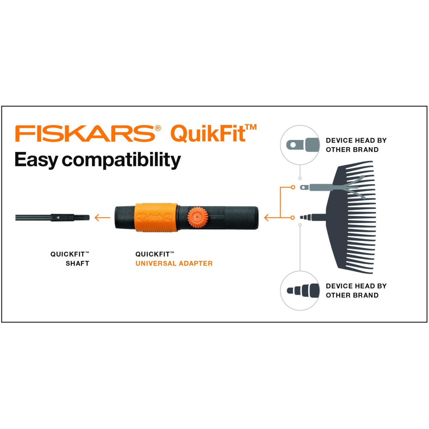 L'Adattatore Universale Fiskars 1000617 ottimizza l'uso degli attrezzi da giardinaggio. Compatibile con il sistema QuikFit, è leggero e resistente. Ideale per alternare rapidamente diverse teste di attrezzi.