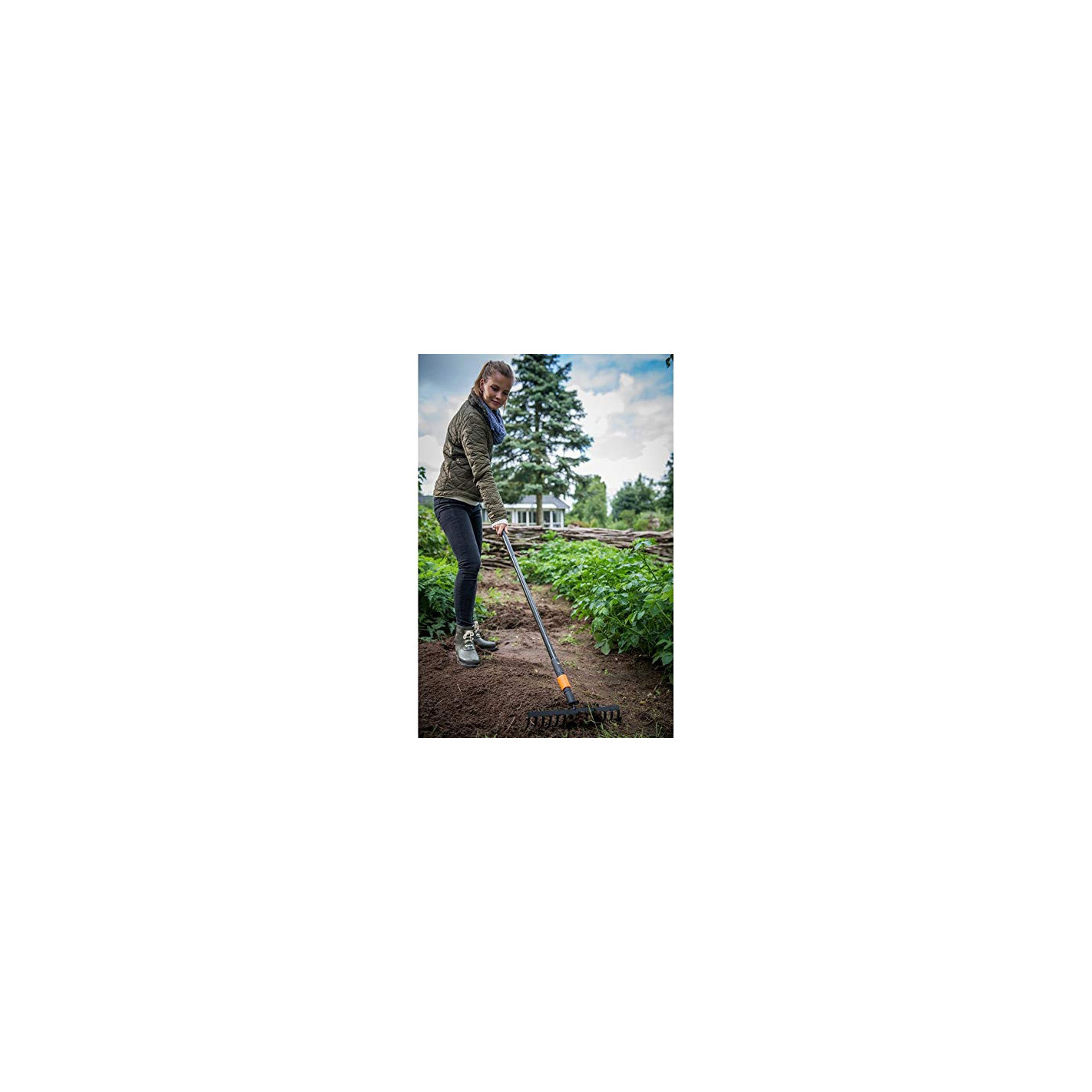 Il rastrello Fiskars QuikFit offre robustezza e versatilità per la manutenzione del suolo. Con 14 denti in acciaio e larghezza di 41 cm, è ideale per livellare e aerare il terreno in modo efficiente.