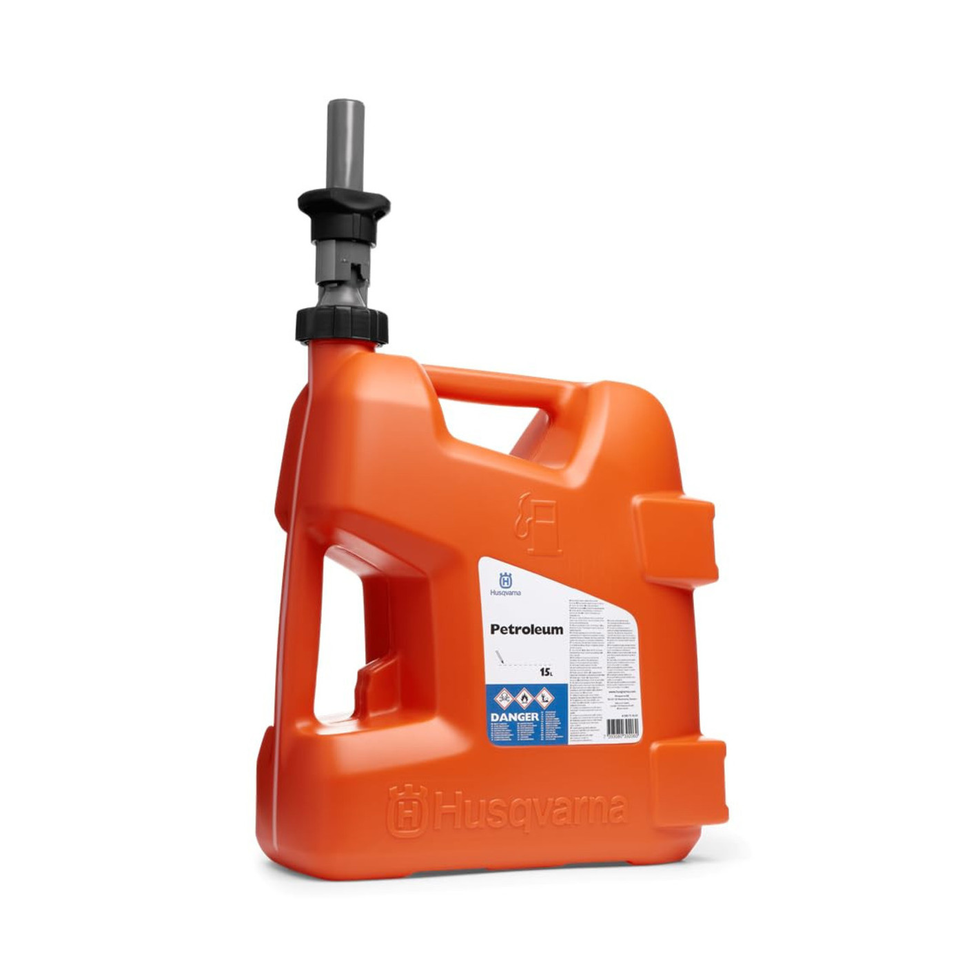 La tanica benzina Husqvarna da 15 litri è robusta e pratica. Dotata di tubazione integrata e chiusura ermetica, garantisce rifornimenti sicuri. Certificata UN per il trasporto di carburanti.