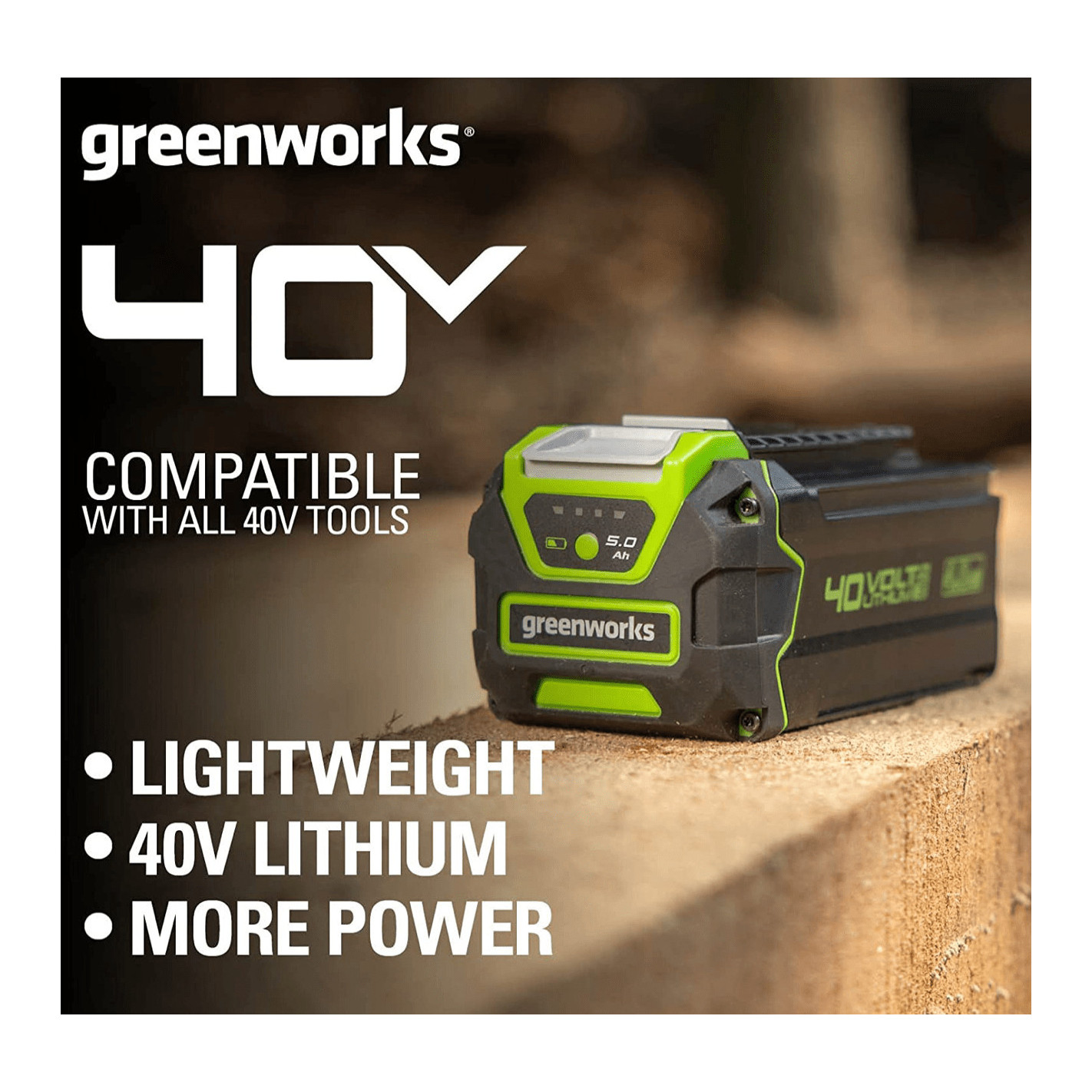 La compatibilità universale con la gamma di utensili elettrici Greenworks da 40V rende questa batteria un investimento versatile per il vostro arsenale di giardinaggio. Che si tratti di tosaerba, decespugliatori, motoseghe o soffiatori, la G40B5 garantisce potenza costante e affidabile.