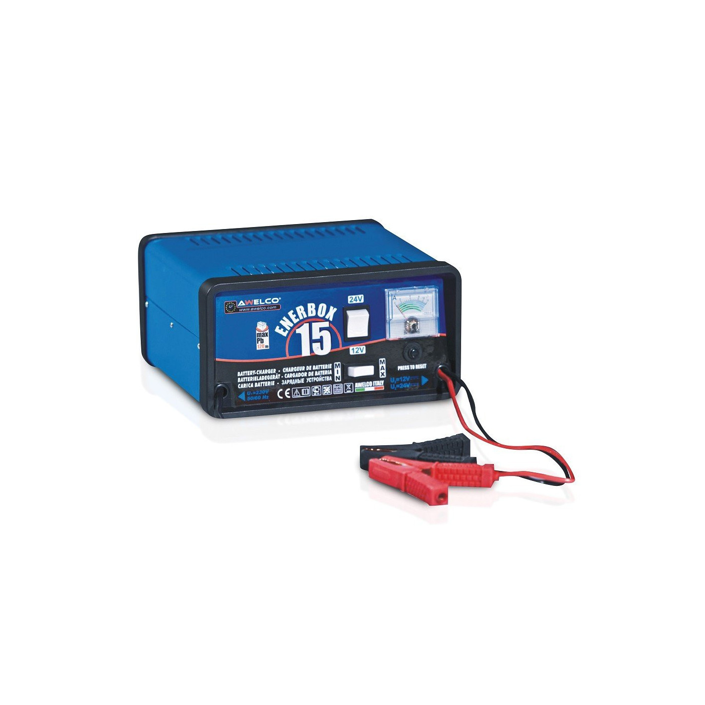 AWELCO Enerbox 15 è un caricabatteria professionale per auto e moto. Ricarica batterie 12V/24V fino a 120Ah con sistema intelligente a 7 stadi. Portatile e sicuro, ideale per officine e garage.