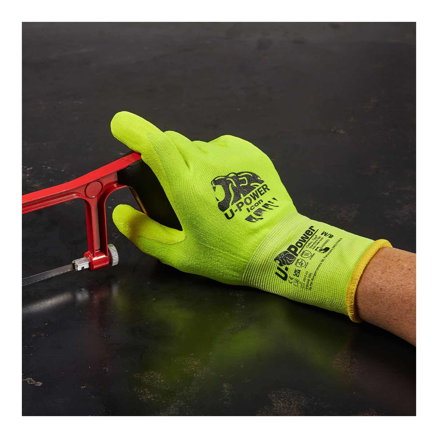 La Micro schiuma di nitrile sul palmo assicura a questi guanti elasticità e traspirabilità, offrendo massimo comfort e protezione per tutto il giorno.
