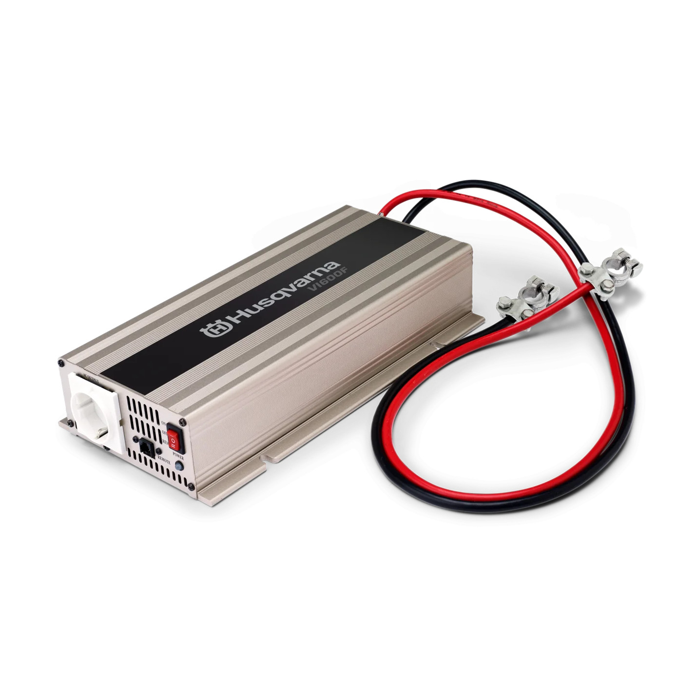 L'Inverter VI600F Husqvarna converte corrente 12V DC in 220V AC per ricaricare attrezzi da giardino professionali. Ideale per lavori in aree remote, offre alimentazione portatile e versatile per vari strumenti Husqvarna.