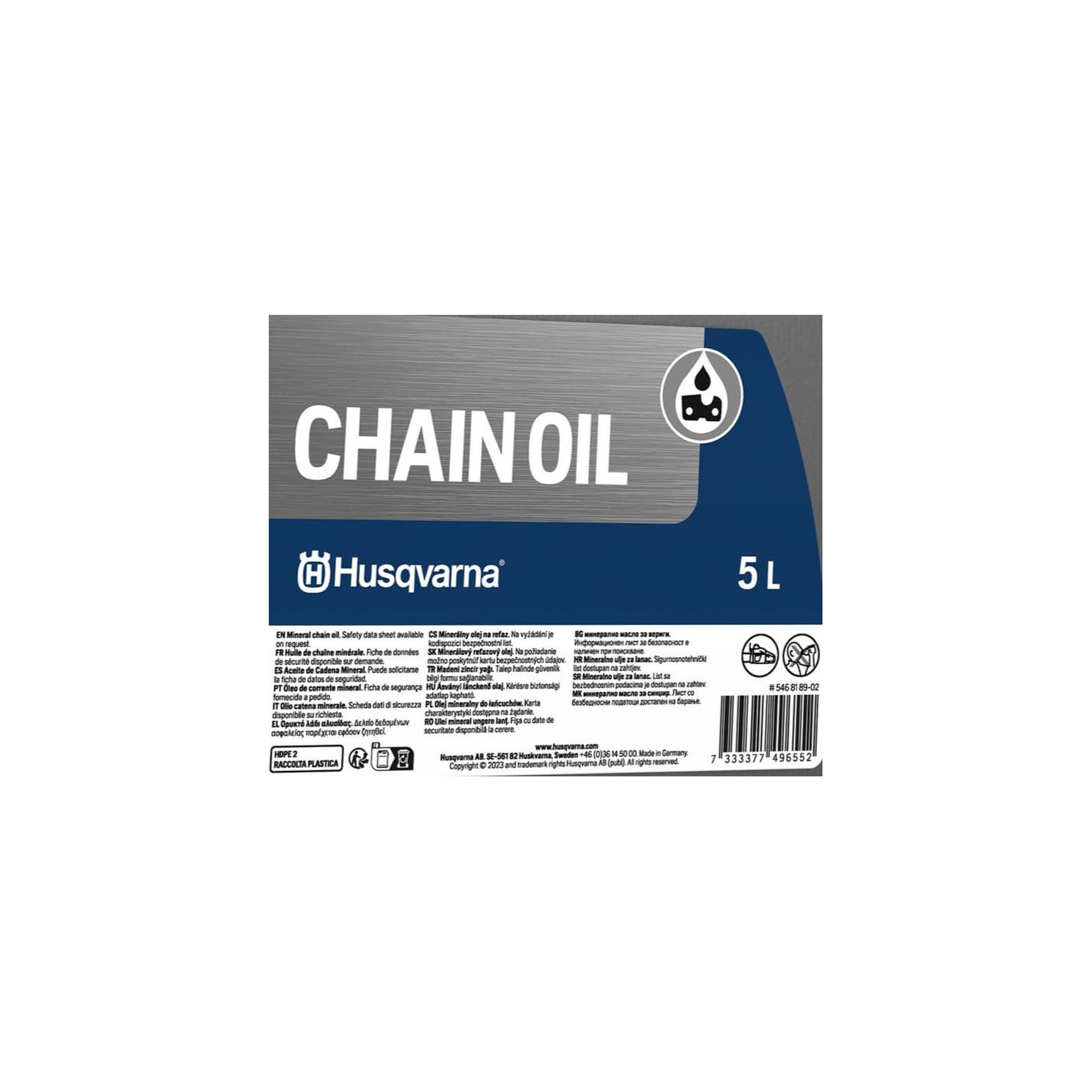 Il lubrificante Husqvarna è formulato con additivi anti-usura e anti-ossidanti che garantiscono una protezione superiore della catena e della barra guida. La sua composizione chimica assicura un'adesione ottimale alla catena, riducendo le perdite per centrifugazione anche ad alte velocità di rotazione.