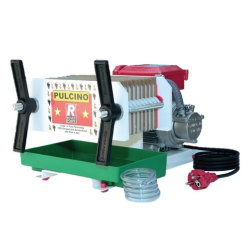 La pompa autoadescante integrata facilita l'aspirazione dell'olio da filtrare, mentre il manometro permette un costante monitoraggio della pressione durante il processo. Il carrello in acciaio inox con ruote rende il Pulcino Inox 10 facilmente trasportabile all'interno del frantoio o del laboratorio.