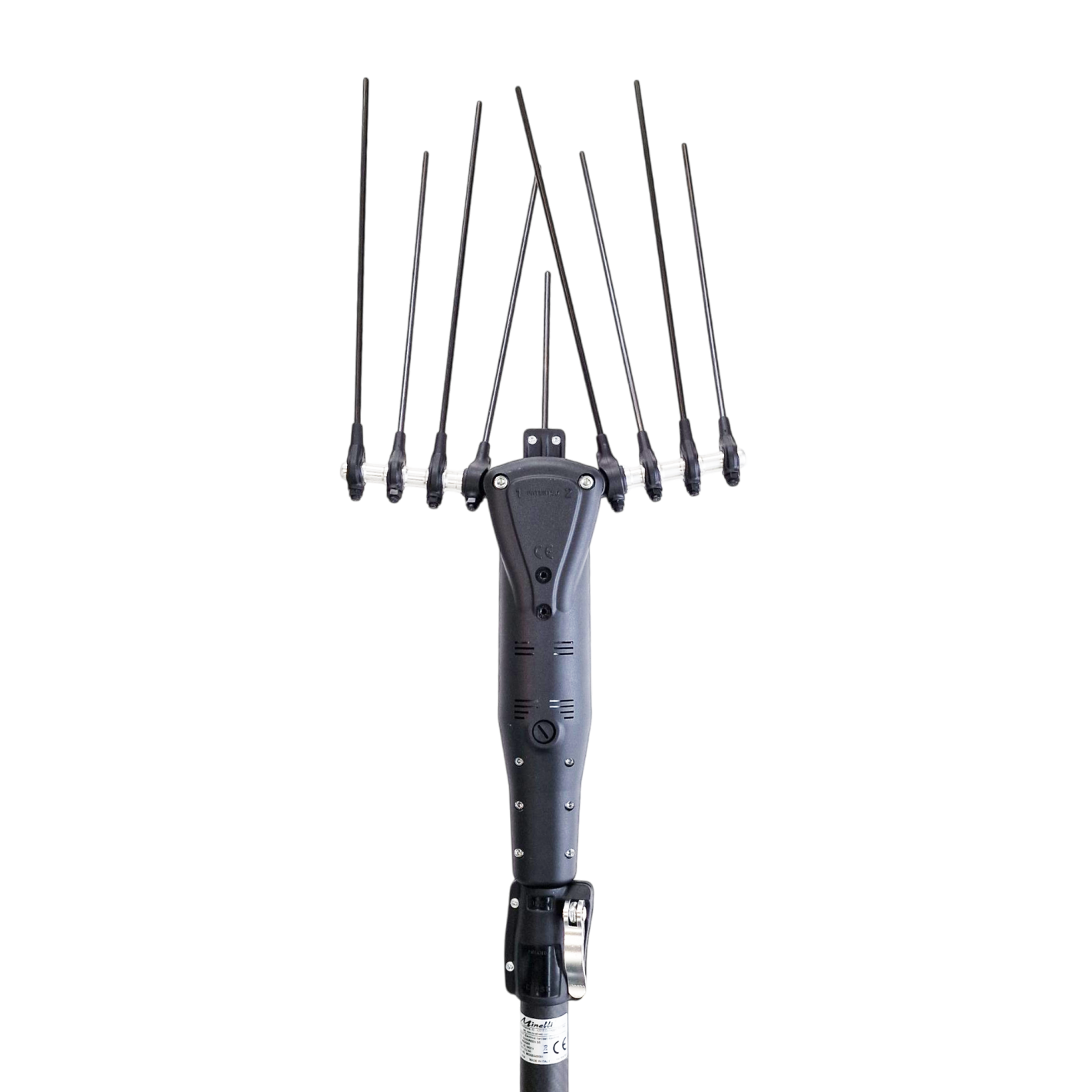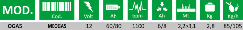 L’OlivGreen A5 monta un motore elettrico a 12V con spazzole sostituibili abbinato a un motoriduttore ottimizzato per il movimento dei rastrelli. L’asta telescopica è dotata di un sicuro sistema di bloccaggio che ne garantisce stabilità durante l’uso. L’apparecchio viene fornito con un cavo di prolunga da 14 metri per facilitare lo spostamento nel campo senza interrompere il lavoro.