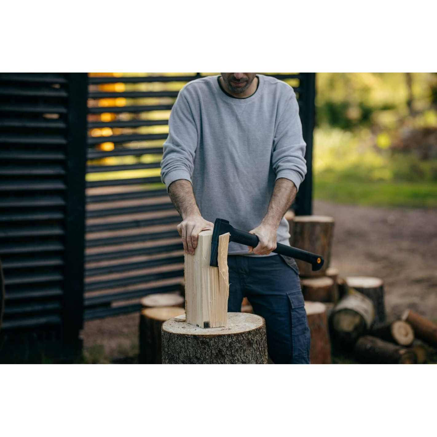 La sicurezza è una priorità assoluta per Fiskars. La connessione indetachabile tra la testa dell'ascia e il manico elimina il rischio di separazione durante l'uso intensivo, garantendo la massima sicurezza dell'operatore. Inoltre, il rivestimento antiattrito della lama non solo migliora l'efficienza del taglio, ma riduce anche il rischio di incidenti dovuti a lame incastrate nel legno.