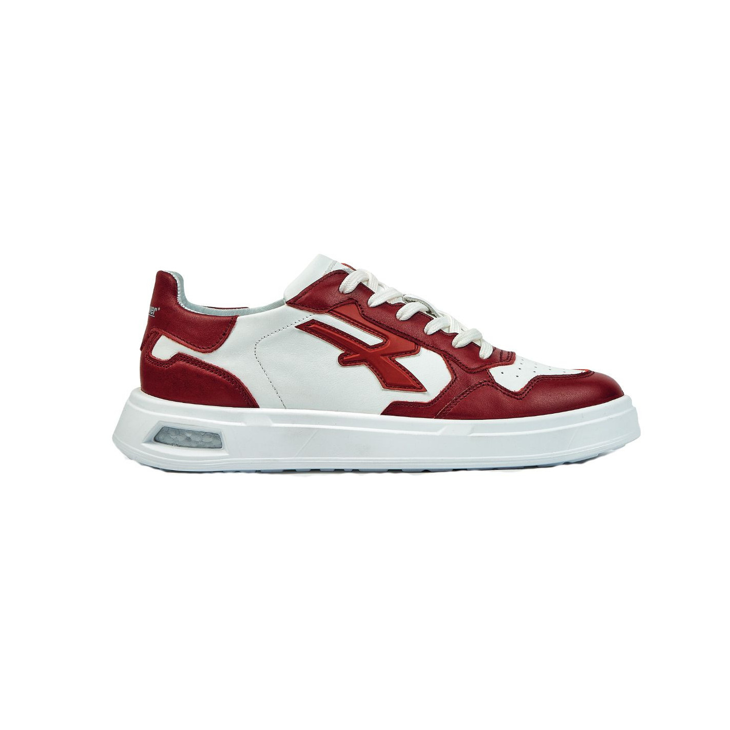 Scarpe di nuova generazione realizzate per il tempo libero, stile moderno con tomaia in morbida pelle bianca e riporti in microfibra amaranto, fodera interna in pelle bianca, suola in poliuretano con inserto Infinergy.