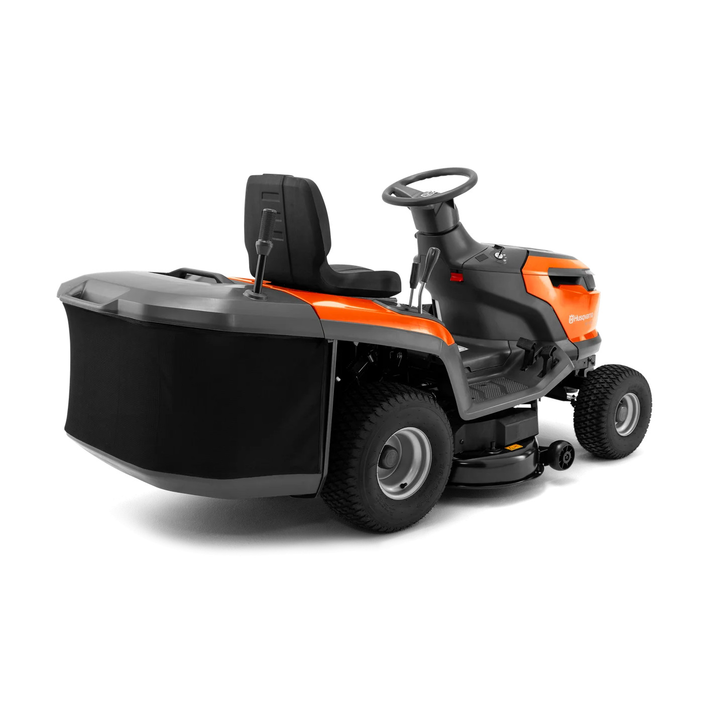 Husqvarna TC112, trattorino con trasmissione idrostatica e piatto da 95 cm. Con cesto di raccolta per raccogliere l'erba tagliata. Ideale per prati di grandi dimensioni e facile da usare.