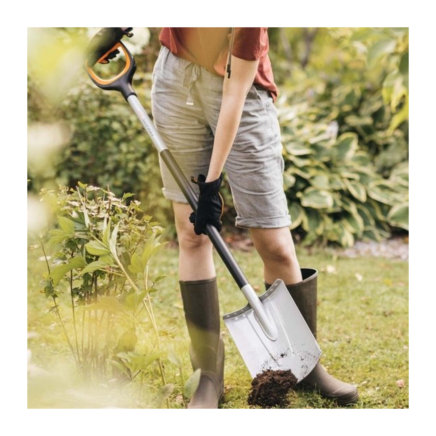 La Fiskars Vanga Quadra Xact 120 cm è un attrezzo da giardinaggio ergonomico professionale. Lama in acciaio al boro e impugnatura SoftGrip® per comfort e durata. Ideale per terreni morbidi.